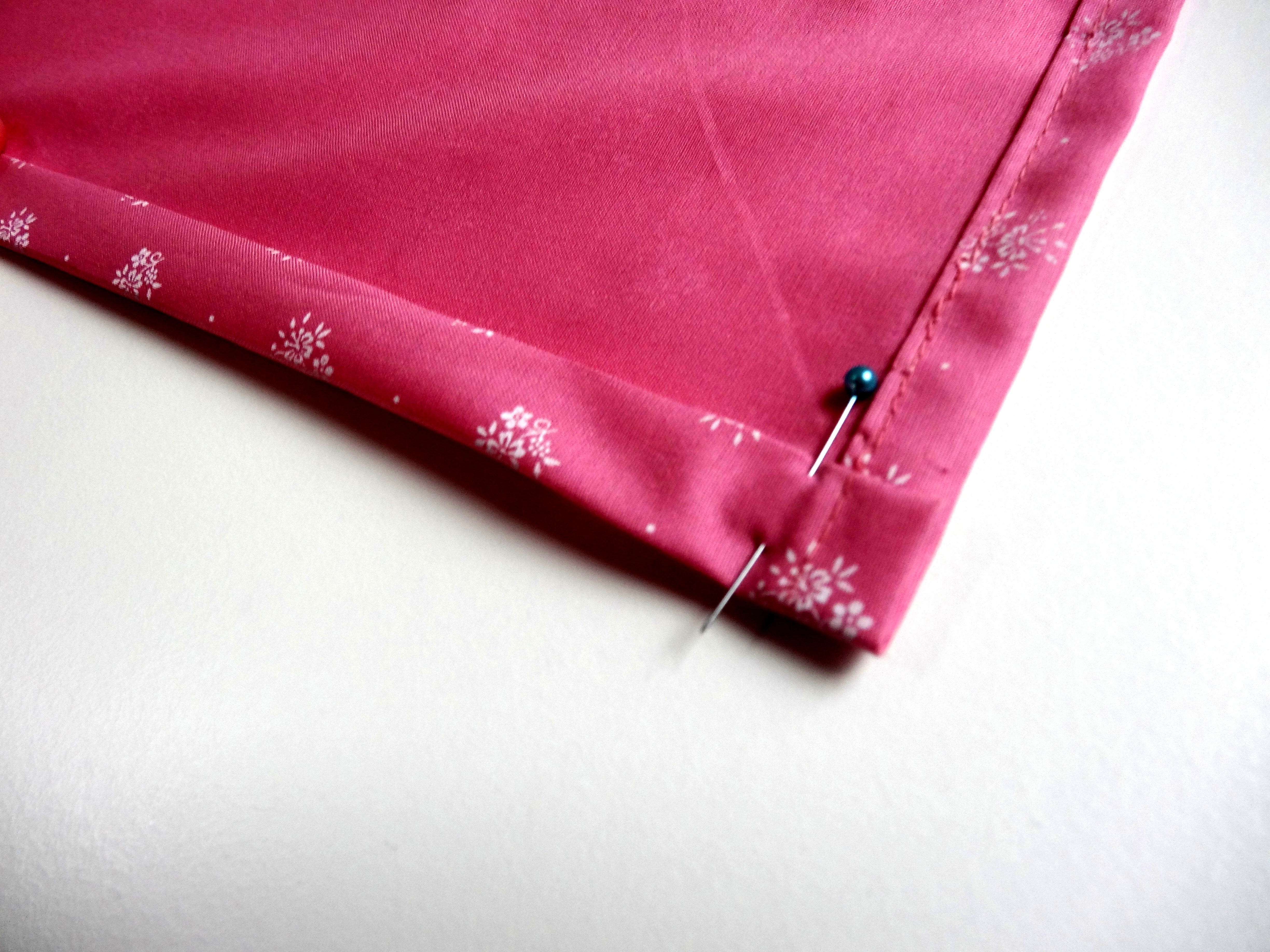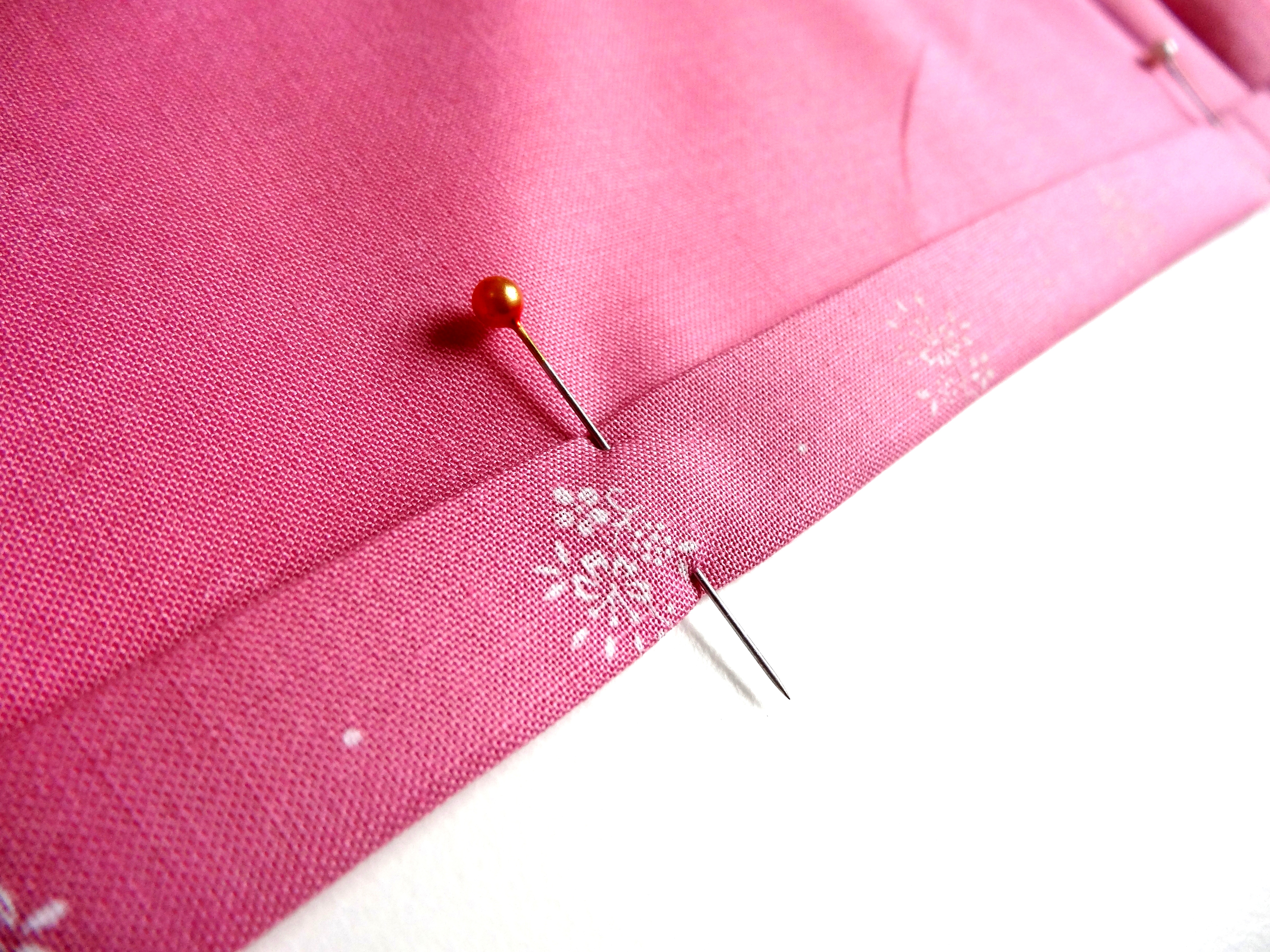 Stecke jetzt zuerst die kurzen Seitenränder mit Stecknadeln fest.