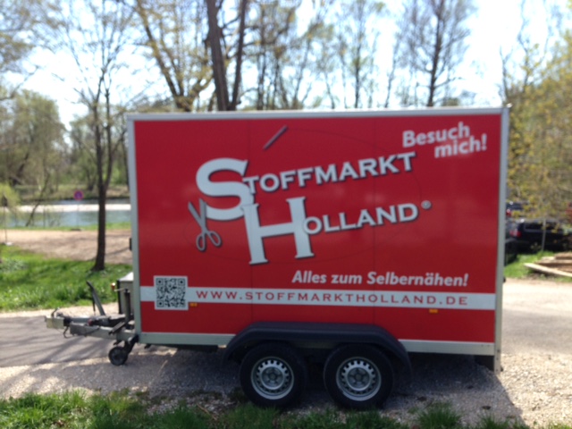Kathi's "Stoff-Haul": Stoffmarkt HollandDas Prinzip ist simpel: Die holländischen Veranstalter des Stoffmarktes reisen mit Ständen und eigenen Stoffen an, zusätzlich können sich Stoffhändler aus der Nähe der jeweiligen Veranstaltungsorte ebenfalls Standplätze buchen. Das sorgt für noch mehr Auswahl und die lokalen Geschäfte können noch ein bisschen Werbung für sich machen.