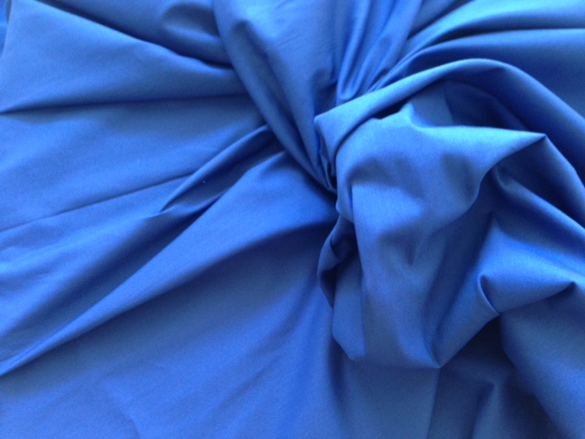Dieses Kornblumenblau hat es mir angetan. Auf dem Foto kommt das Blau etwas heller rüber. Der Stoff ist dünne, weichfließende, aber blickdichte Meterware aus Baumwolle.