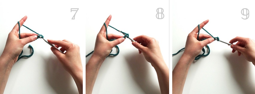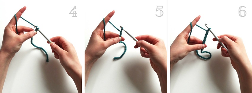 3. … indem Du Die Häkelnadel drehst, damit sich der Faden schön um die Nadel wickelt …