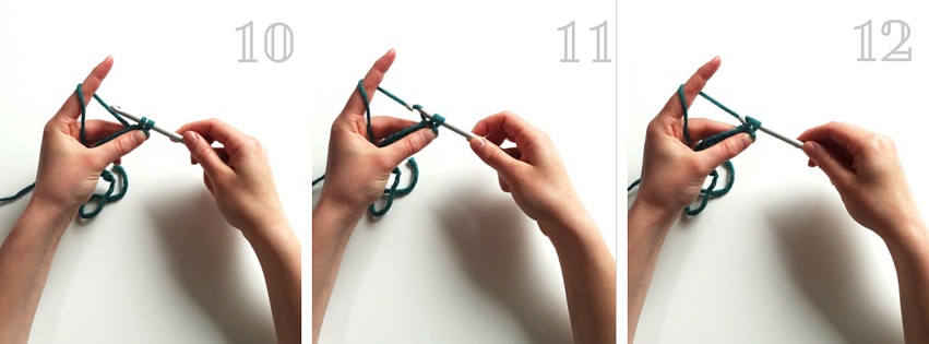 12. … und ihn durch beide Schlaufen auf der Häkelnadel ziehst.