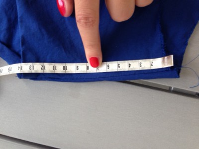 11. Die Epaulette so auf die Schulternaht stecken, dass die Spitze genau an die Halskante stößt und das andere Ende mittig über der Schulternaht liegt.