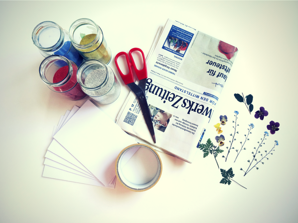 Ich glaube, es ist mal wieder Zeit für eine neue Karten-Idee. Vor ein paar Wochen gab’s hier ja schon die Anleitung für super-easy Washi-Tape-Karten und davor noch für Knopfkarten, jeweils mit Bastelvorlage. Da hab ich mich an eine weitere Bastelidee erinnert, die ich schon seit Jahrzehnten kenne: Bastelkarten mit gepressten Blütenblättern und Quarzsand.