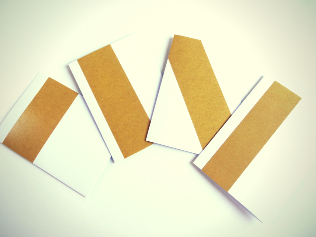 Jetzt geht wieder Mal alles ganz easy und fix. Wie Du den Klebeband-Streifen auf den Karten anbringst, bleibt Dir überlassen. Ich hab hier mal ein paar Möglichkeiten zusammengestellt. Senkrecht, horizontal oder diagonal, mittig oder mit Abstand zu den Seiten …