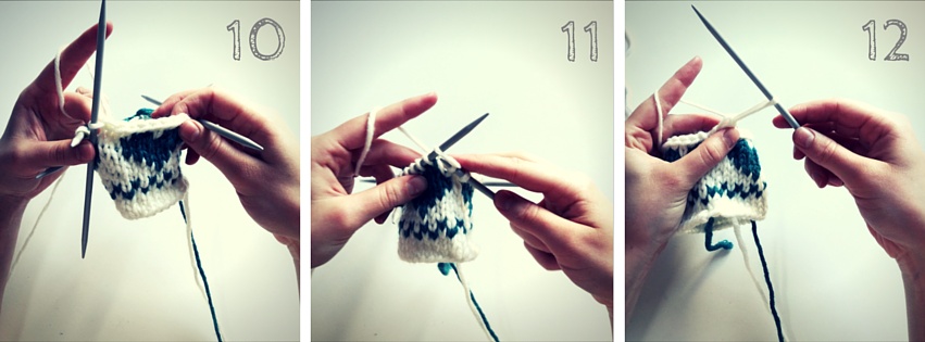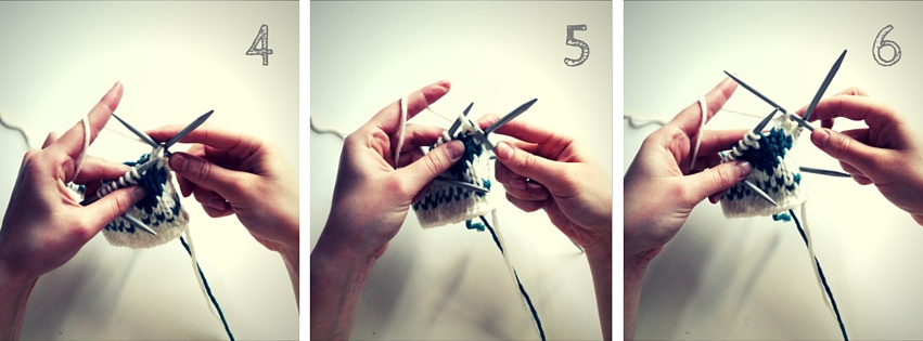 7. Dann strickst Du wieder eine weitere Masche von der linken Nadel ab …