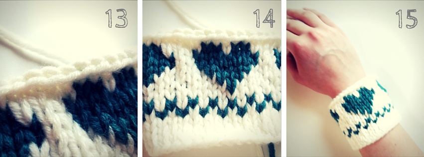 11. Bei den anderen Nadeln machst Du es genauso. Achte darauf, dass Du den Faden nicht zu fest zurrst beim Abketten. Bei Stulpen wird sonst der obere Rand eventuell zu eng.
