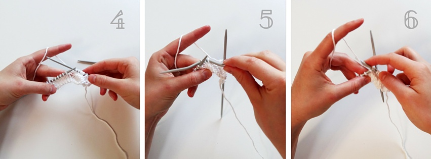 7. … hebst die Maschen von der Zopfnadel wieder auf die linke Nadel, und strickst sie auch rechts ab.