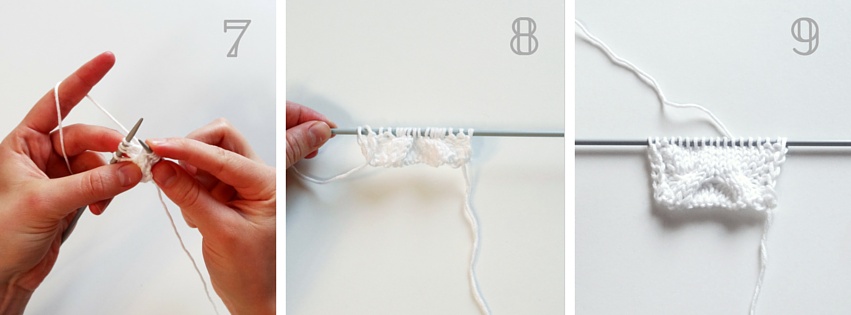 11. Sobald Du ein paar Mal die Musterreihen mit den Verschränkungen gestrickt hast …