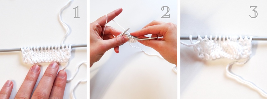 5. … dann sieht das Ganze so aus. Und das war’s auch schon! Jetzt strickst Du wieder die 3 Rück- und 4 Hinreihen und beginnst dann wieder mit der ersten Musterreihe, in der Du die ersten 3 Maschen vor die Arbeit legst und so weiter.