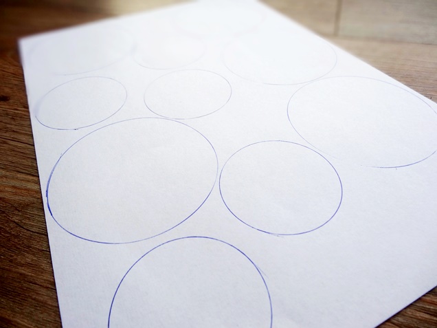 Und so geht’s: Es ist mega-einfach, und sieht totzdem extrem toll aus (weil symmetrisch). Du nimmst weißes Papier, und zeichnest mit dem Zirkel (oder mit einem Bleistift um ein Glas herum) Kreise auf.