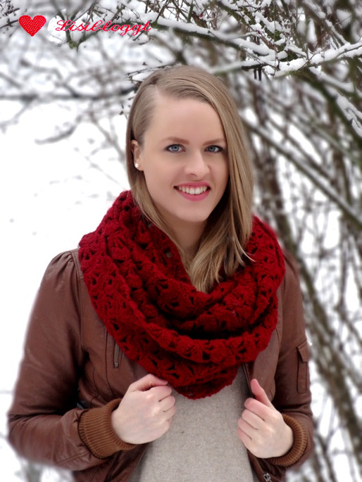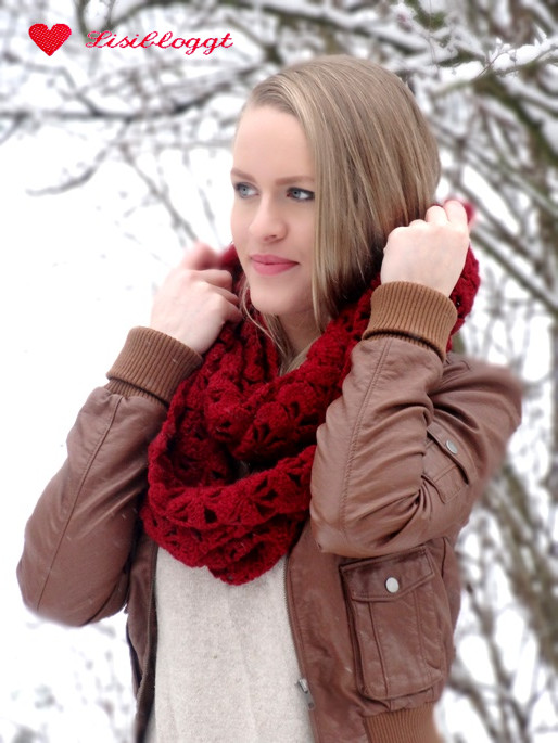 Anleitung: Gehäkelter Loop-Schal mit MuschelmusterEr sieht einfach so dermaßen kompliziert aus, dass man einfach nicht glauben kann, dass er „nur“ gehäkelt ist! Mein weinroter Loop-Schal mit Muschelmuster ist ein echter Hingucker und ich trage ihn auch im Herbst oder Frühjahr gerne, weil er durch die groben Maschen sehr luftdurchlässig ist. Wie’s funktioniert, zeige ich Dir hier.