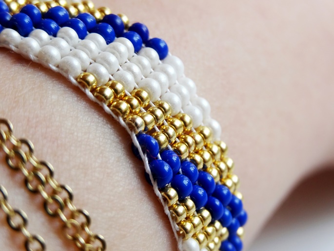 Ein paar kleine Lisitipps noch zum Schluss: Achte darauf, dass der Faden immer eine gewisse Spannung hat. Sonst gibt es unschöne und unregelmäßige Lücken zwischen den Perlen und das Armband wird instabil. Je mehr Spannung der Garnfaden hat, desto weniger flexibel ist das Armband später dann. Durch die Perlen schmiegt es sich aber ganz wunderbar an Deinen Arm und trägt sich sehr angenehm.