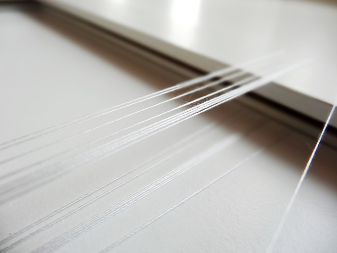 Nimm Dir den Bilderrahmen zur Hand, und befestige an der längeren Seite mittig das eine Ende des Garns. Jetzt wickelst Du das Garn immer wieder um den gesamten Rahmen, bis Du insgesamt 8 Garnstränge direkt nebeneinander verlaufend aufgewickelt hast.