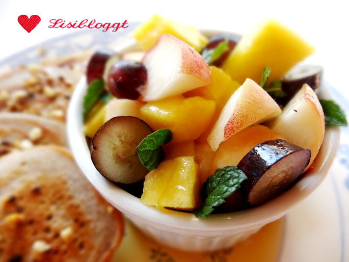 Sie brauchen von jeder Seite nur ca. 2-3 Minuten, bis sie goldbraun und köstlich sind! Meine Variante habe ich mit gerösteten Mandeln, Shornsirup und leckerem Obstsalat mit Minze verputzt. (Im Übrigen noch eine tolle Idee für die Verwendung von frischer Minze, die ich in meinem Artikel hierzu gar nicht erwähnt hatte).