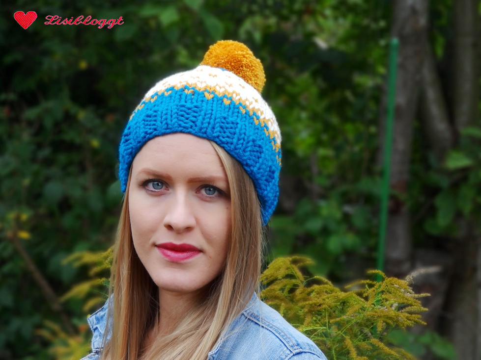 Die Farben für die Mütze kannst Du natürlich ganz nach Deinem Geschmack wählen. Ich finde die Kombination aus dem Petrol, Senfgelb und Weiß sehr hübsch, aber ich kann mir natürlich auch noch viele andere Kombinationen vorstellen.