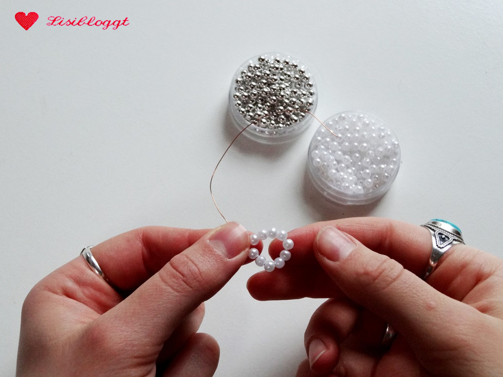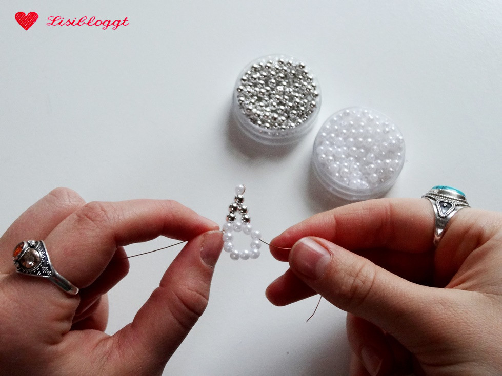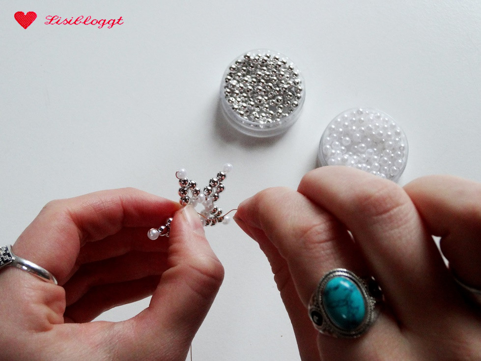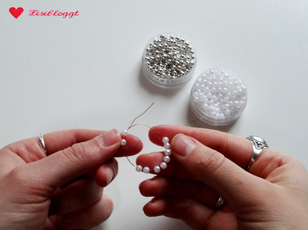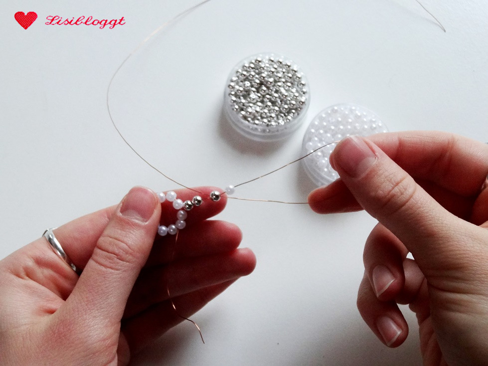 - Perlen in Weiß und Silber (bei mir: Durchmesser 4 mm)