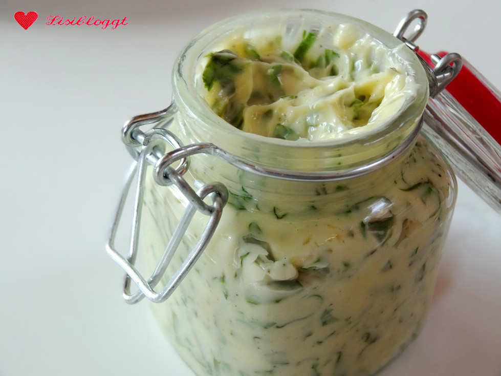 In einem kleinen Glasgefäß mit Bügelverschluss lässt sich die Margarine gut abfüllen und sie eignet sich dann hervorragend als ein schönes Mitbringsel zur nächsten Grillparty.
