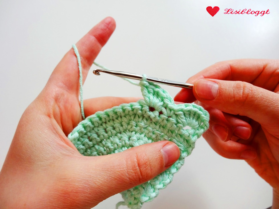 Wenn Du Dir nochmal genau ansehen möchtest, wie das Muschelmuster funktioniert, schau gern in meine Anleitung dazu rein.Anleitung: Cupcake-Applikation häkeln