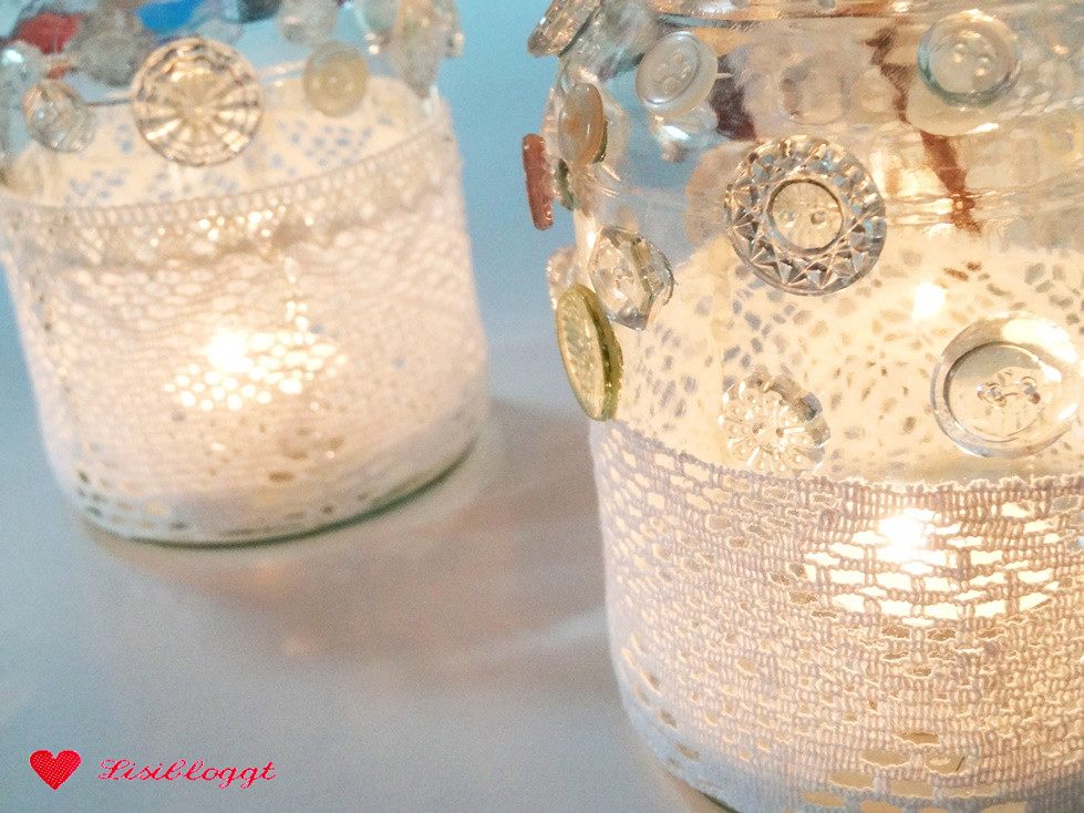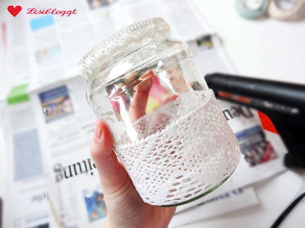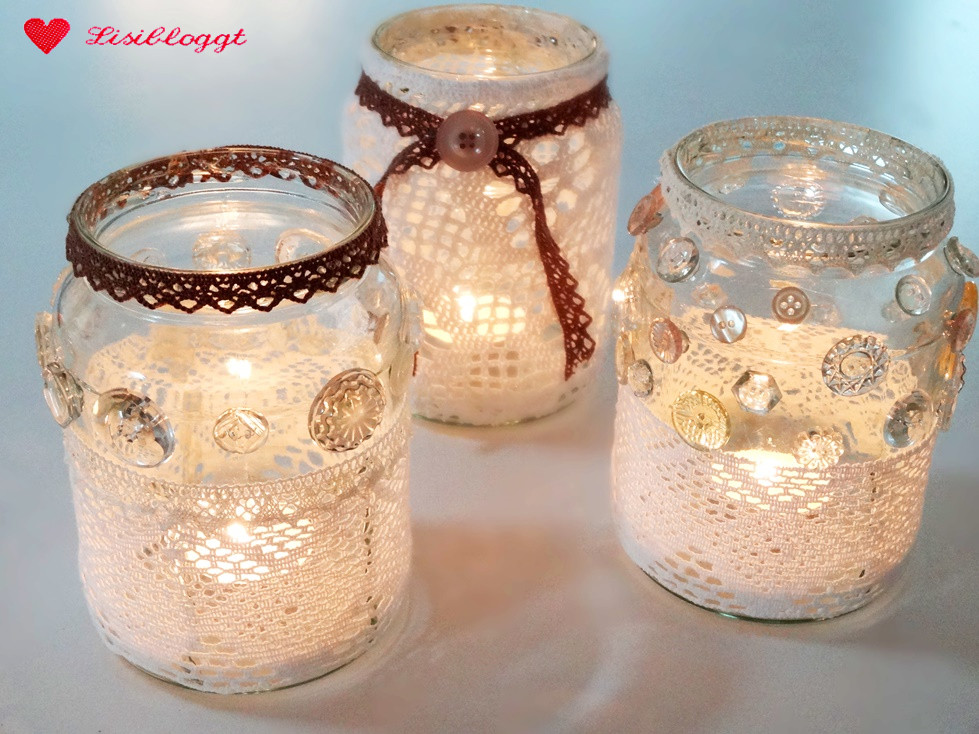 Heute habe ich mal wieder ein schönes und super einfaches DIY für euch – es ist viel zu lange her, dass ich mal was gebastelt habe. An einem schönen winterlichen Wochenende hab ich mir also letzthin ein paar leere Gurkengläser und Spitzenbesatz geschnappt – mehr braucht man nämlich gar nicht, um ein paar romantische Windlichter selbst zu basteln.