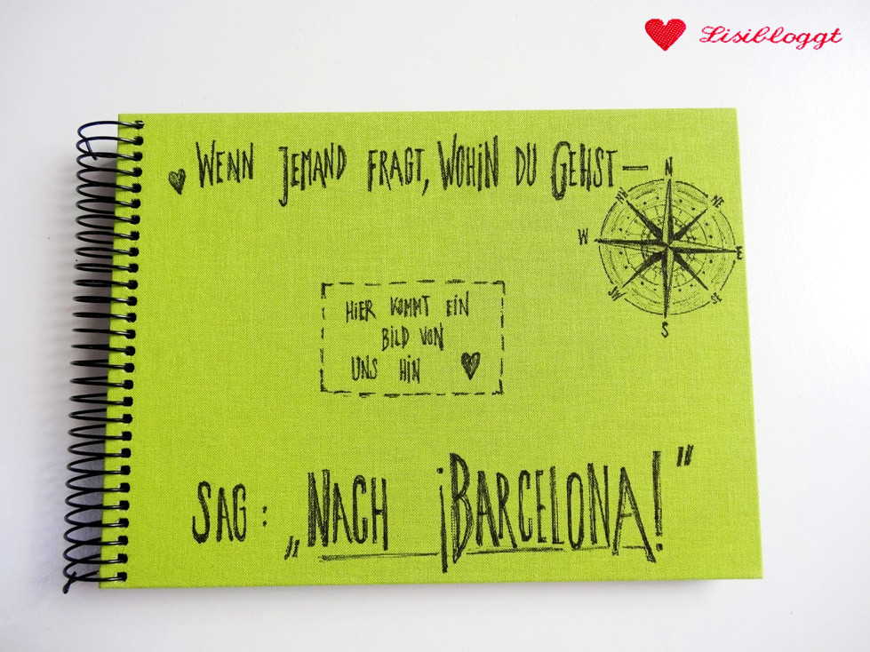 Ich hab für mein Album-Geschenk eine Liedzeile von Wandas „Bologna“ für mich abgewandelt: „Wenn jemand fragt, wohin Du gehst, sag: Nach Barcelona!“ Hier kannst Du nehmen, was Dir eben so einfällt.