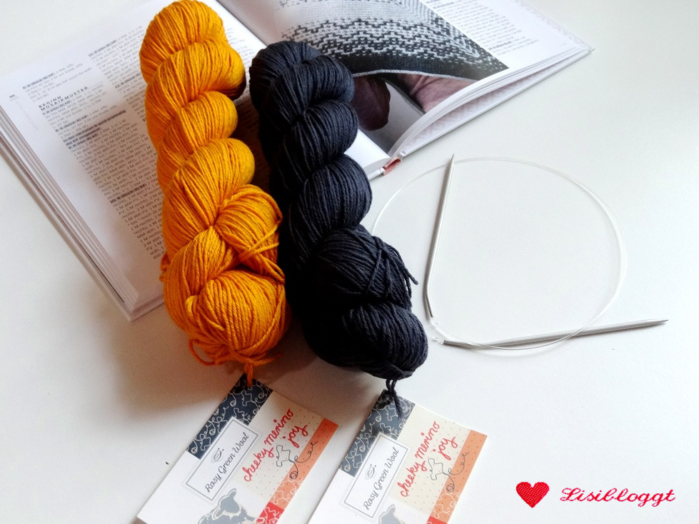 Gestrickt habe ich es aus dem Garn Cheeky Merino Joy von Rosy Green Wool in den Farben „Sonnenblume“ und „Cornwall Schiefer“. Es war mir wichtig, wenn ich schon kein rein veganes Garn ohne Tierhaar-Anteil verwende, dass es zumindest Bio und fair ist. Da kann man bei Rosy Green Wool nichts falsch machen.