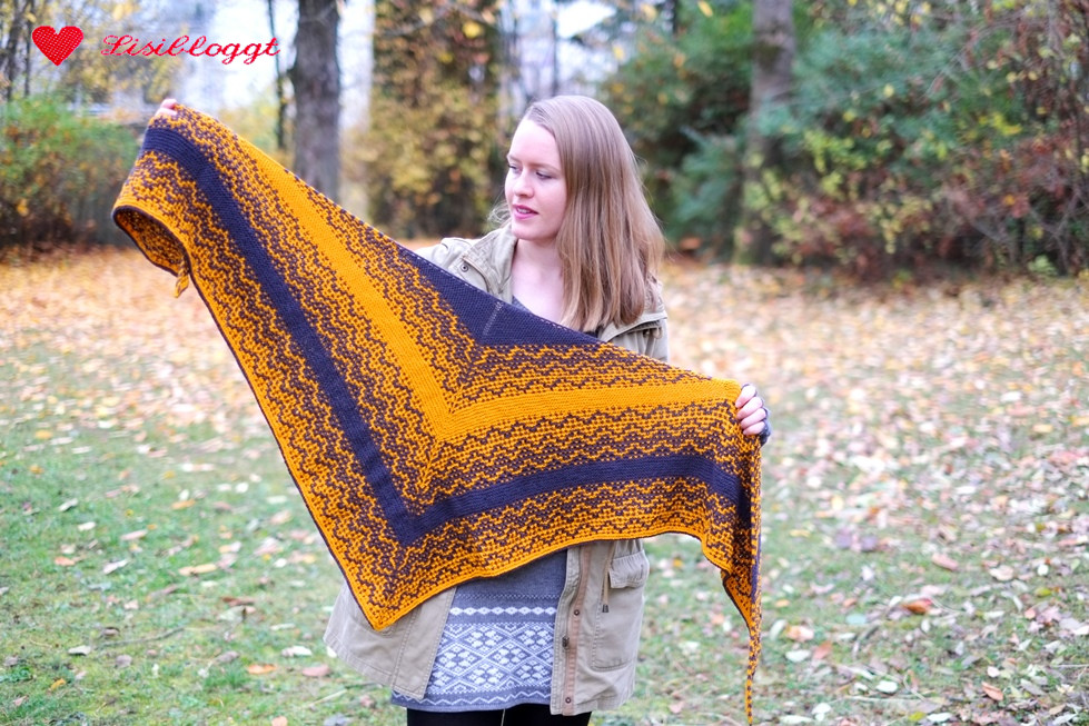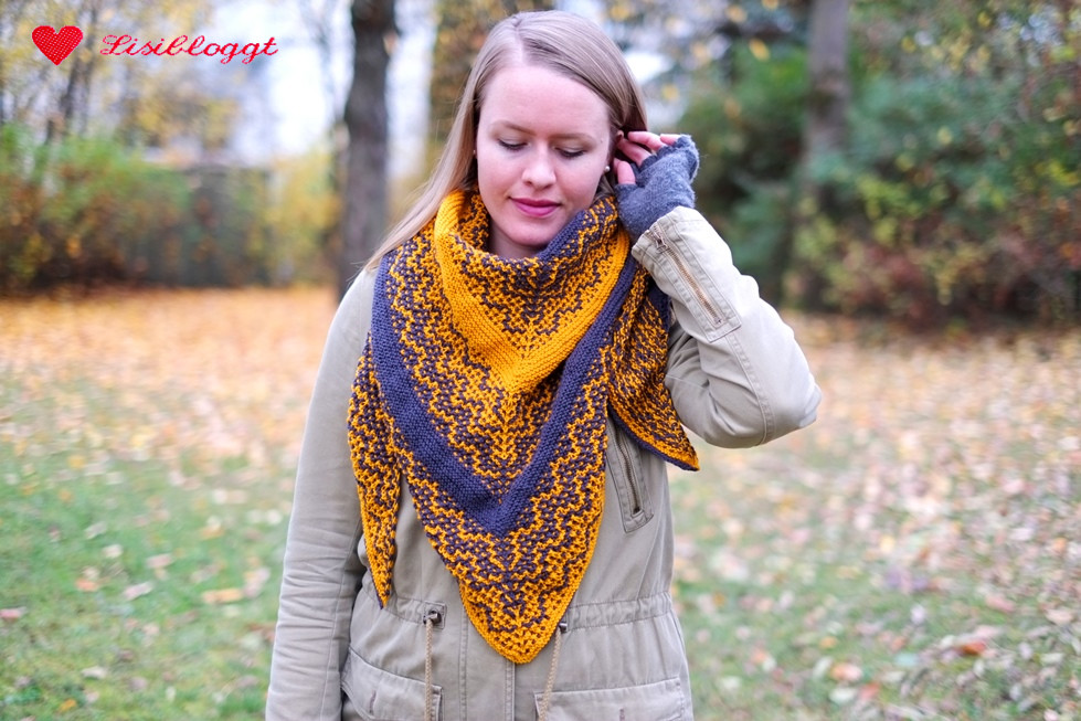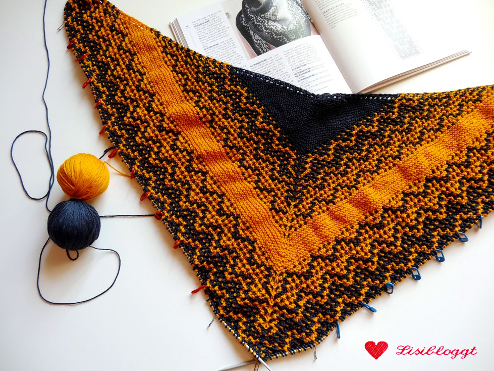 Für das Tuch habe ich mich deshalb entschieden, weil das Muster mir auf den ersten Blick machbar erschien (ich hatte ja vorher noch nie Mosaikmuster gestrickt) und ich wollte unbedingt ein Dreieckstuch.