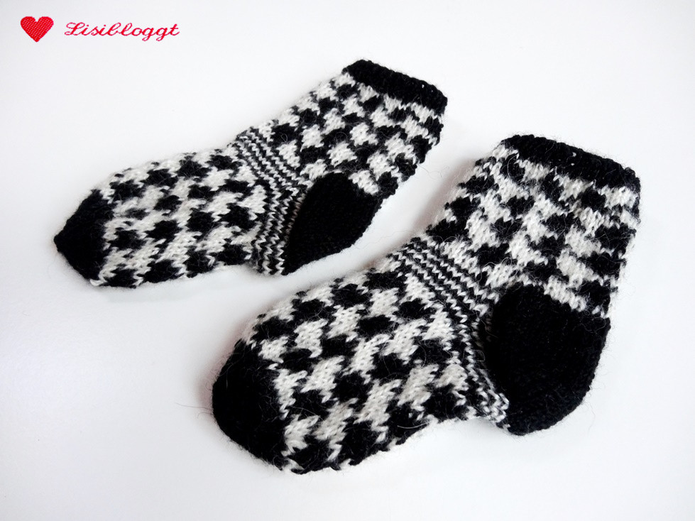 Schwarz-weiße Strickmuster gehen irgendwie immer, das Hahnentritt-Muster besonders: Es ist für mich der totale Klassiker. Beim Durchstöbern meiner Garnreste bin ich wieder auf dieses schöne Muster gekommen und musste damit einfach Babysocken stricken – die Anleitung mit Mustervorlage als PDF bekommst Du hier.