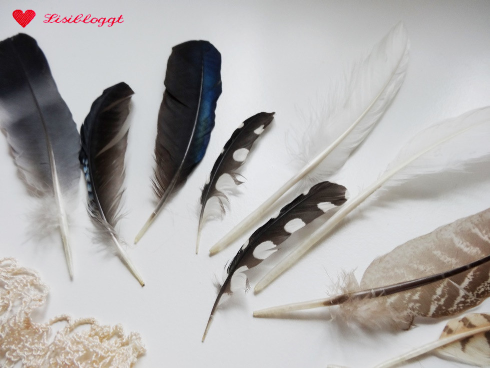 Um mehr natürliche Materialien reinzubekommen, halte ich bei Wanderungen und Spaziergängen immer die Augen offen nach schönen Schätzen: Vogelfedern, Eicheln, Buchecker-Hüllen… So ist auch mein herbstlicher Traumfänger entstanden.