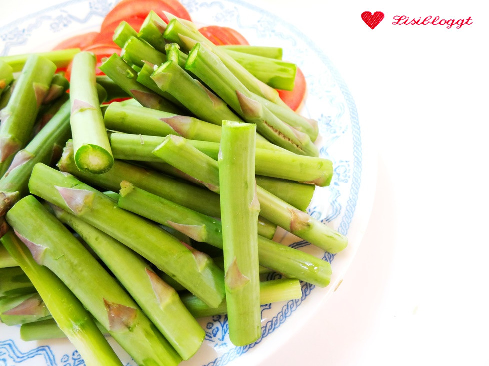 Natürlich kannst Du auch weißen Spargel dazumischen – der grüne passt aber eben besonders gut zu den Tomaten.