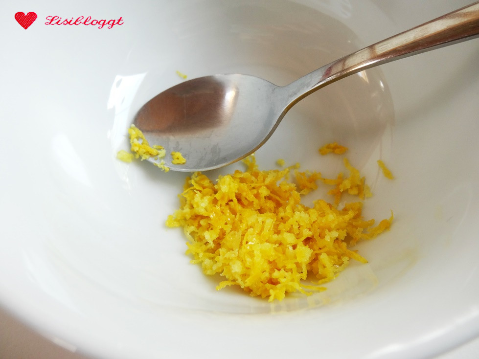 Für das Öl benötigst Du ca. 2 EL Zitronenschalen-Abrieb, die Du in eine Schüssel gibst.